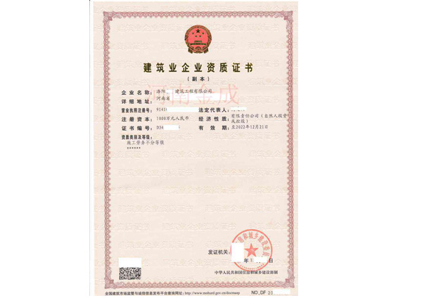 • 建筑業企業資質證書副
